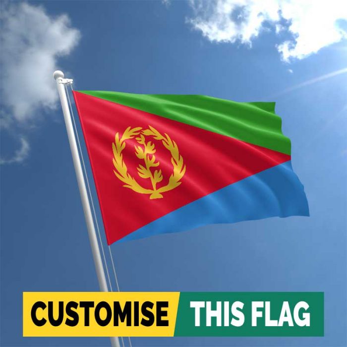 Are you looking to create an eye catching custom printed flag with a country theme? Why not personalise an Eritrea flag with your choice of text, or add a personal photo to give the national flag of Eritrea a unique look making a custom flag like no other. Add as much or as little personalisation as you like, including images, logos or drawings, to make a spectacular custom flag design like no other!