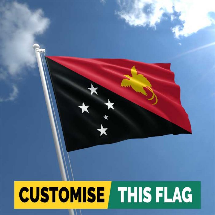 A custom printed Papua New Guinea flag is the ideal solution for identifying your location at packed music festival camp sites, marking your spot on heaving summer beaches or displaying at any Papua themed event. Make the flag of Papua New Guinea your own with personalied text, photos or logos, creating a stunning one-off and eye catching flag that will clearly stand out from the crowd. Use as many or as few colours as you like at no extra cost to add a splash of vibrant colour to your unique custom flag design.